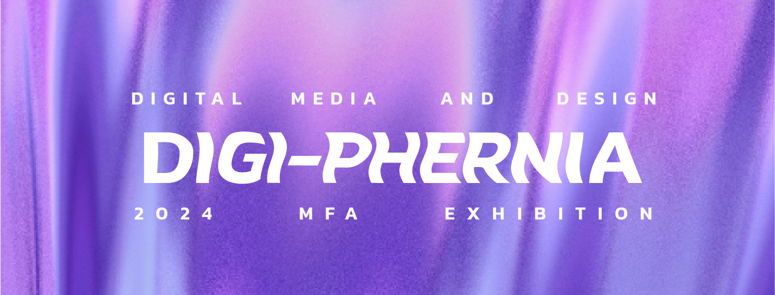 The title, inspired by the work of media theorist, Douglas Rushkoff in his 2017 book Present Shock, ‘digi-phernia’ refers to the phenomenon of navigating multiple digital realms simultaneously, a concept vividly embodied not only in the artistic expressions presented in this exhibition, but also in the experiences of the artists themselves. As individuals who have crossed vast geographic borders to pursue their terminal degrees, each artist has been navigating the complexities of a digitally interconnected existence. They have discovered that new forms of media bridge the gap between their past lives and present aspirations, simultaneously forging new pathways of expression and connection.