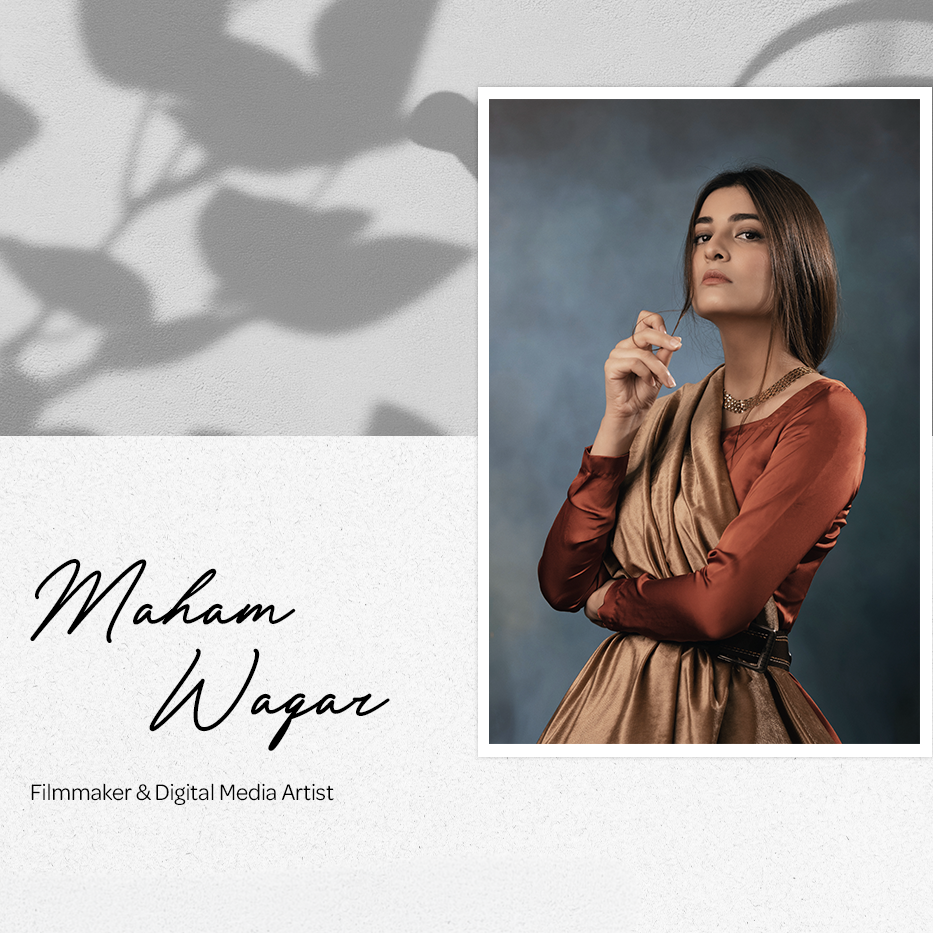 Maham Waqar is a filmmaker and digital media artist whose work explores social justice, human rights, and cultural silence through narrative cinema. Born in Lahore, Pakistan, she creates films centered on marginalized voices, particularly women and children navigating violence and systemic inequality. Drawing from real stories, her practice blends cinematic storytelling with trauma-informed approaches to advocate for empathy, accountability, and social change. Her work foregrounds underrepresented realities through emotionally immersive narratives that bridge personal experience and broader social structures. She holds a BA (Hons) in Film, Television, and Theatre from Beaconhouse National University, Pakistan, graduating summa cum laude.